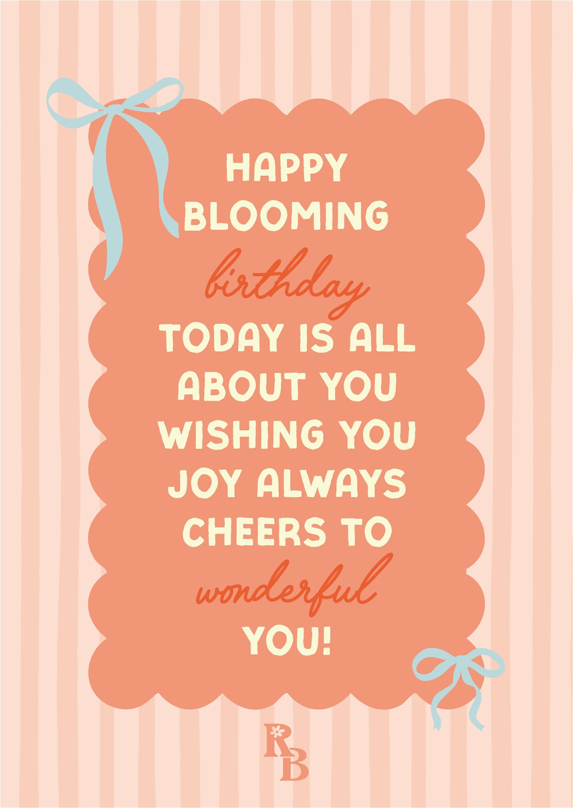 Each Birthday Bloom is paired with a thoughtful postcard, featuring words to celebrate the day and remind the recipient how special they are. Add your own handwritten note to the back of the postcard.
